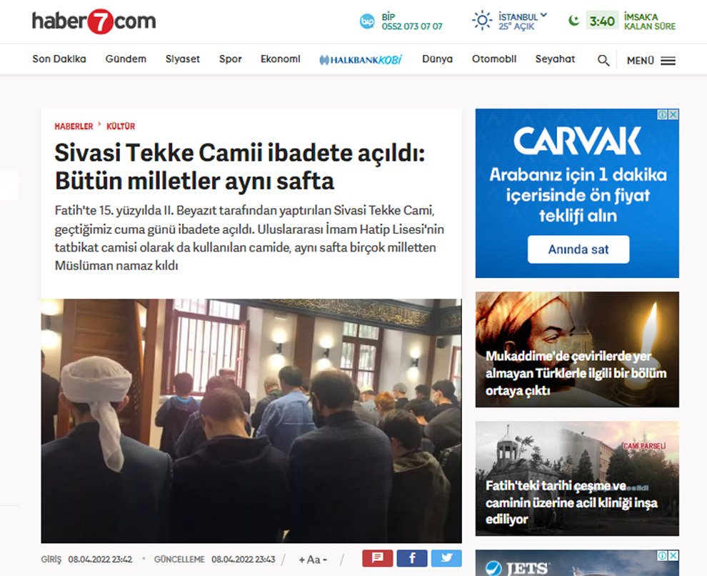 https://www.haber7.com/kultur/haber/3211142-sivasi-tekke-camii-ibadete-acildi-butun-milletler-ayni-safta