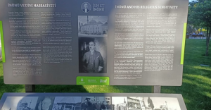 2018 yılı sonrası İBB Yönetimi Camii alanını yukarıda anlatılan hileli yollarla kendisine ve Müsteşarına köşk olarak alan İnönü ile alay edercesine İnönü Heykeli’nin bulunduğu alana “İNÖNÜ VE DİNİ HASSASİYETİ” başlıklı bir yazı koydurmuştur. Ayrıca Heykel’in ziyaretgâh biçimini alması için yaptırdığı Tak ve Kaideyi tarihi eserin temellerine zarar veriyor gerekçesiyle Derneğimizin yaptığı müracaat sonucu ilgili Kurul kaldırtmıştır.