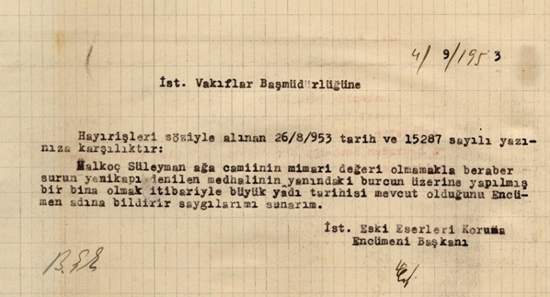2015 yılında Derneğimiz tarafından tesbiti yapılan Camii’nin gerekli Tarihsel Araştırma Belgeleri ile satılan kısmının kamulaştırılması için Vakıflar Bölge Müdürlüğü’ne ve tescil edilmesi hususunda da ilgili Kurul’a başvuruda bulunulmuştur. Eylül 2018’de tescil ettirilmiştir.